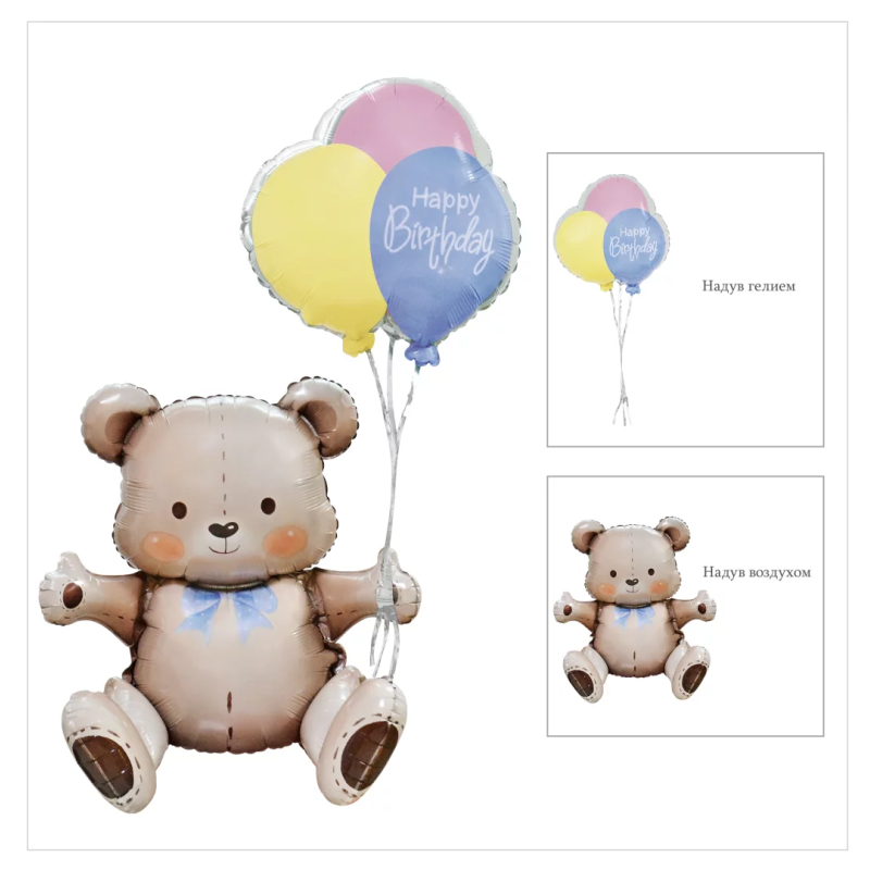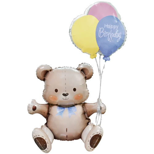 Шар (30''/76 см) Фигура 3D, Мишка на День Рождения, 1 шт. в уп., 26731
