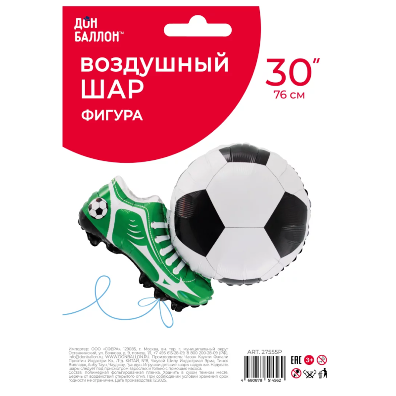Шар (30''/76 см) Фигура, Футбол, Победный Гол, 1 шт. в уп., 27555P