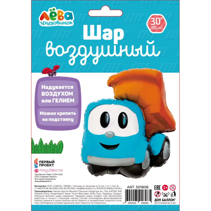 Шар (30''/76 см) Фигура, Грузовичок Лёва, 1 шт. в уп., 501808