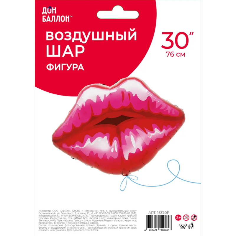 Шар (30''/76 см) Фигура, Губы, Красный, 1 шт. в уп., 15370P