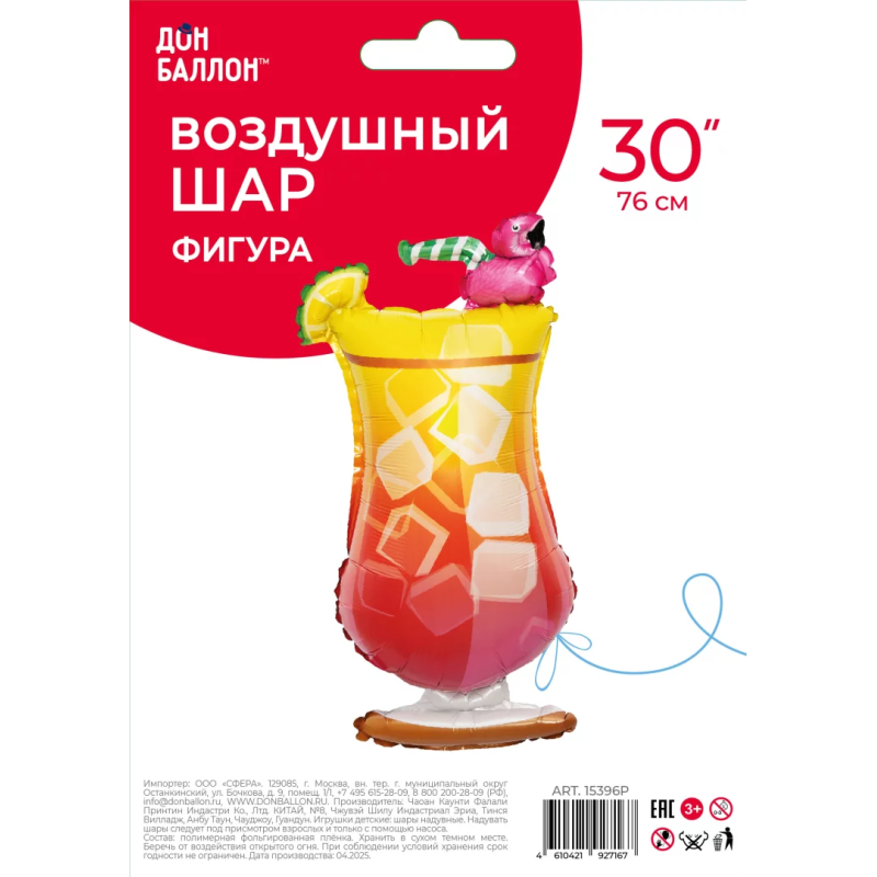Шар (30''/76 см) Фигура, Коктейль со льдом, 1 шт. в уп., 15396P