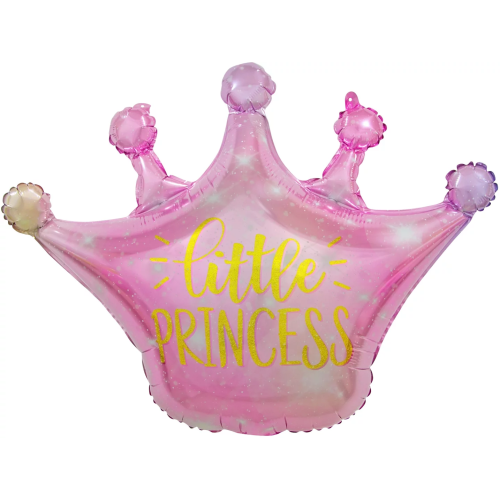 Шар (30''/76 см) Фигура, Корона, Маленькая Принцесса (искорки звезд), Розовый, Градиент, 1 шт., R2577