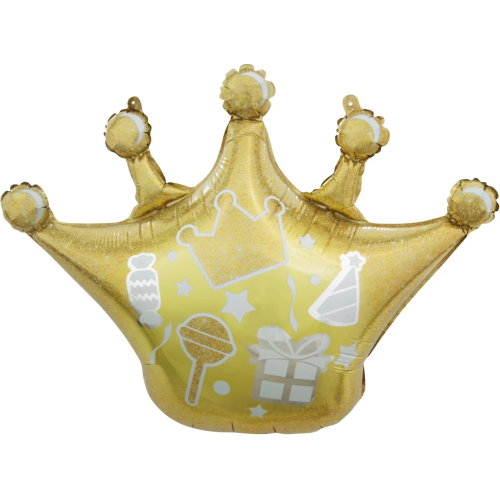 Шар (30''/76 см) Фигура, Корона, Сверкающие искры, Золото, 1 шт., R2579