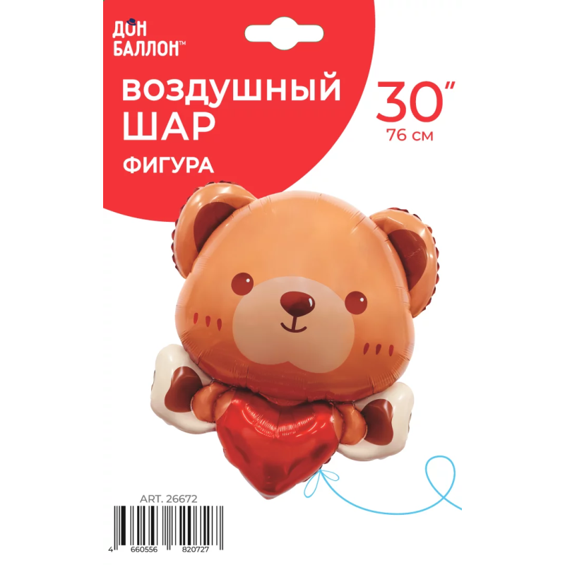 Шар (30''/76 см) Фигура, Мишка с сердцем, 1 шт. в уп., 26672