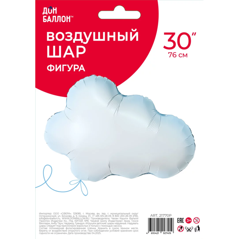 Шар (30''/76 см) Фигура, Облако, 1 шт. в уп., 21770P