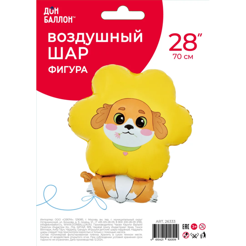 Шар (30''/76 см) Фигура, Песик Цветочек, 1 шт. в уп., 26333