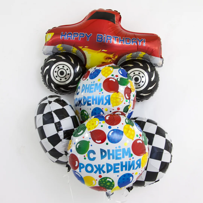 Шар (30''/76 см) Фигура, С Днем Рождения, Пикап Монстр-Трак, Красный, 1 шт., 15495