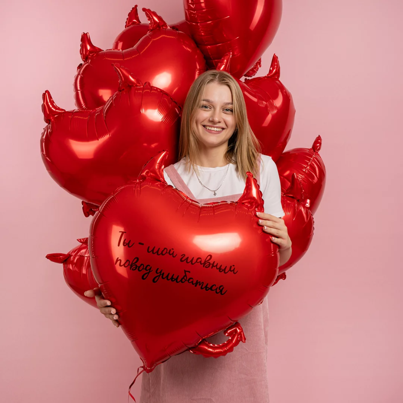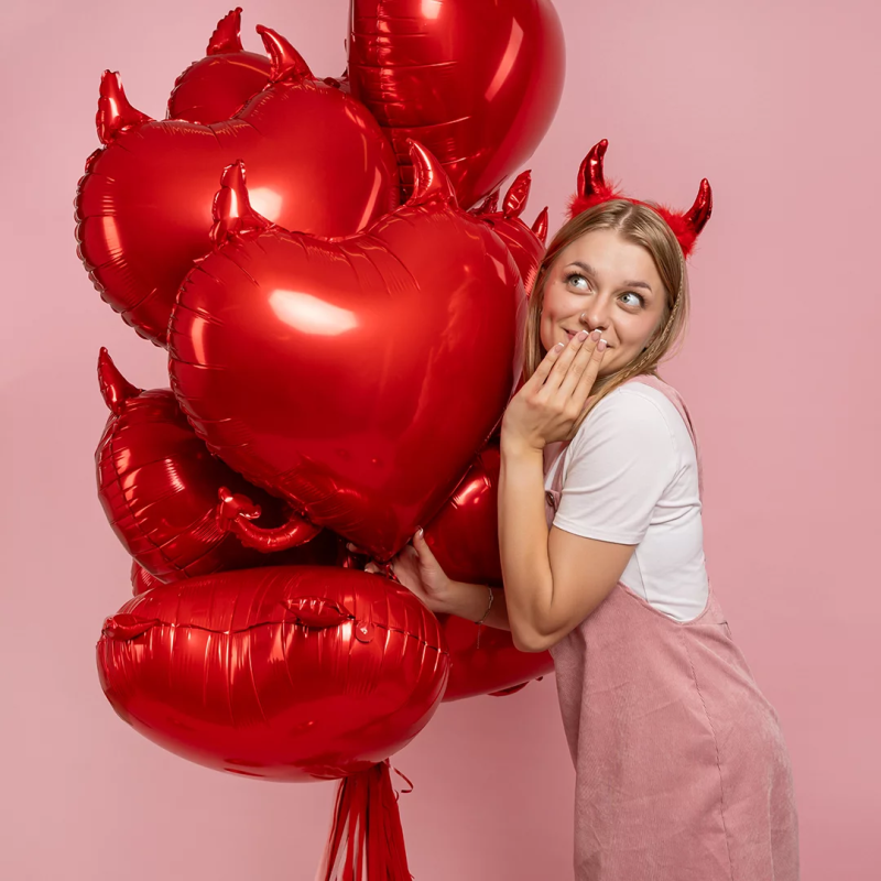 Шар (30''/76 см) Сердце, Чертенок, Красный, 1 шт. в уп., 26476