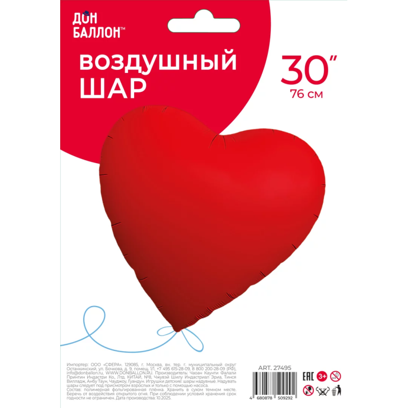| Дизайн | Шар Сердце, Красный |