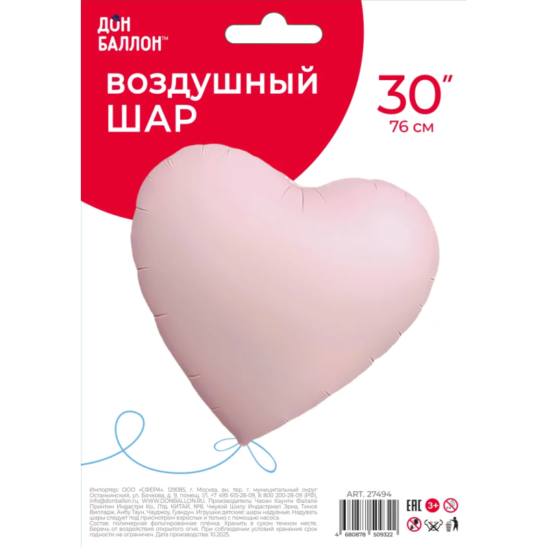 | Дизайн | Шар Сердце, Розовый |