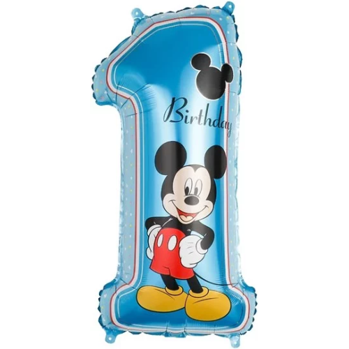 Шар (30''/76 см) Цифра, 1 Микки Маус, Голубой, 1 шт., 555072