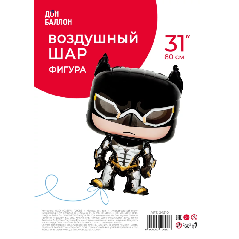 Шар (31''/79 см) Фигура, Бэтмен, 1 шт. в уп., 24510