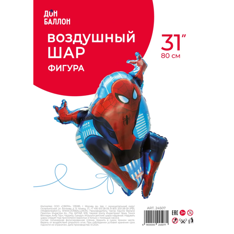 Шар (31''/79 см) Фигура, Человек Паук в полете, 1 шт. в уп., 24507
