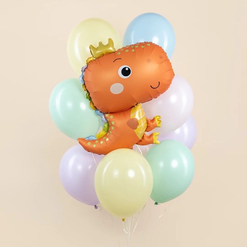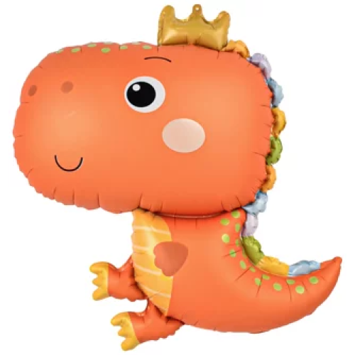 Шар (31''/79 см) Фигура, Динозаврик в короне, Оранжевый, Сатин, 1 шт., 27386