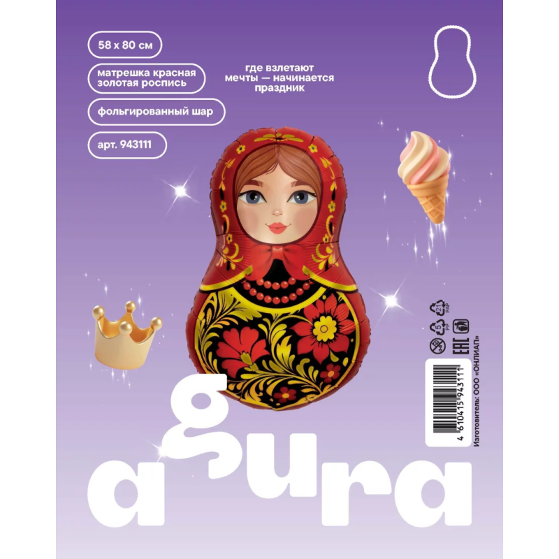 Шар (31''/79 см) Фигура, Матрешка Золотая роспись, 1 шт. в уп., 943111