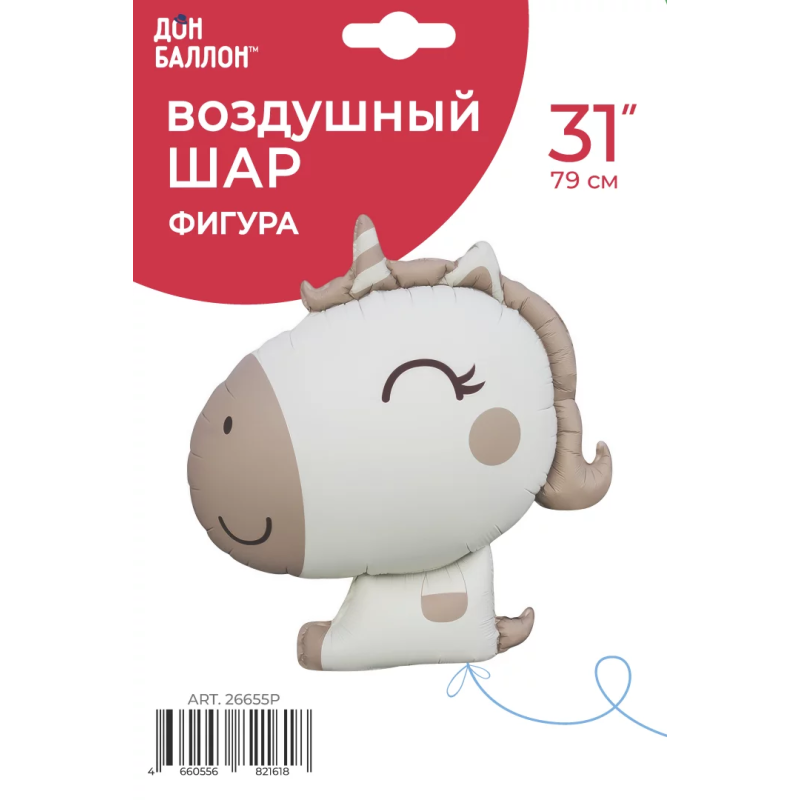 Шар (31''/79 см) Фигура, Милый единорог, Бежевый, Сатин, 1 шт. в уп., 26655P