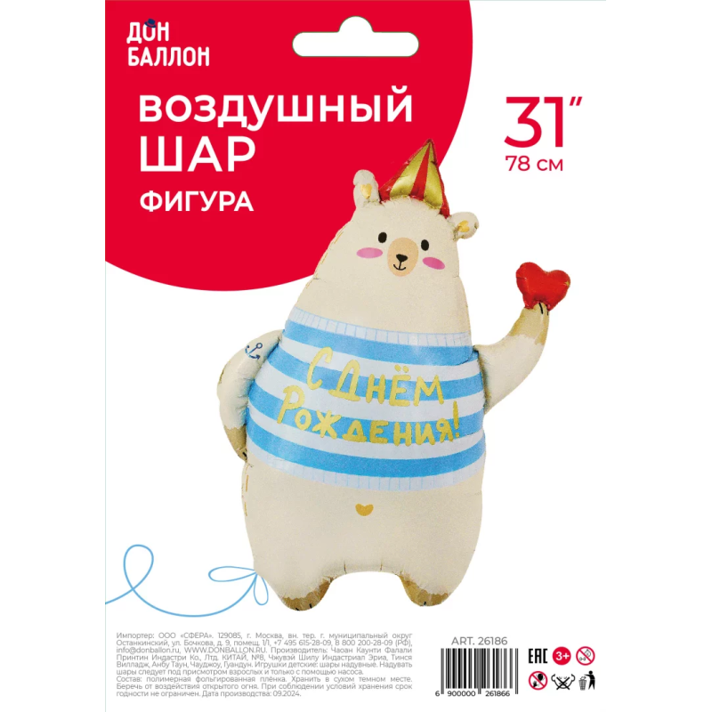 Воздушный шар из полимерной пленки, идеально подходит для детских игр и забав.