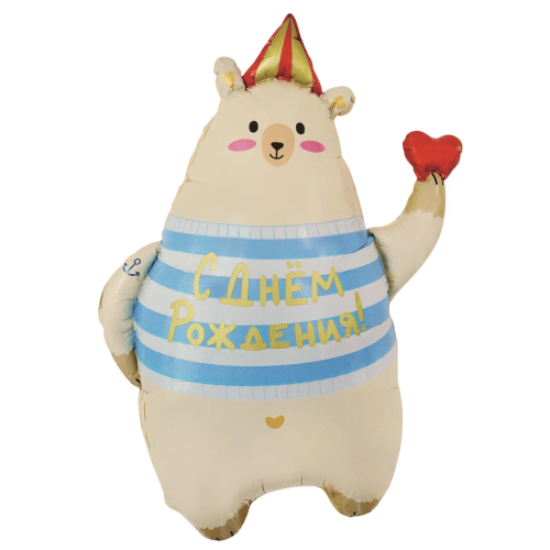 Шар (31''/79 см) Фигура, Мишка с сердечком, Сатин, 1 шт. в уп., 26186