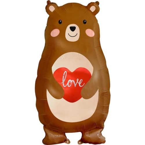 Шар (31''/79 см) Фигура, Мишка с сердцем, 1 шт., 21903