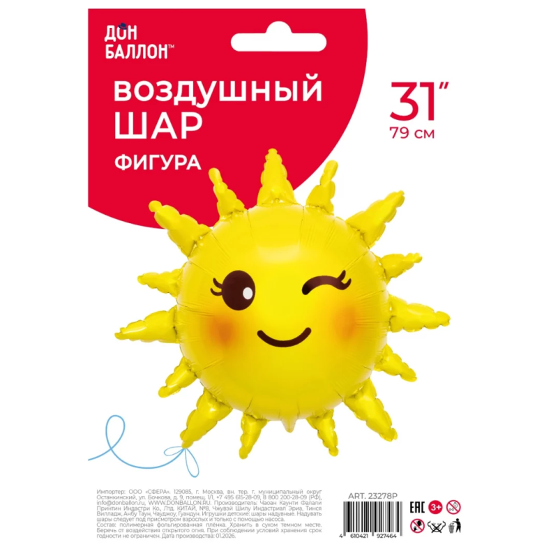 Шар (31''/79 см) Фигура, Солнце, 1 шт. в уп., 23278P