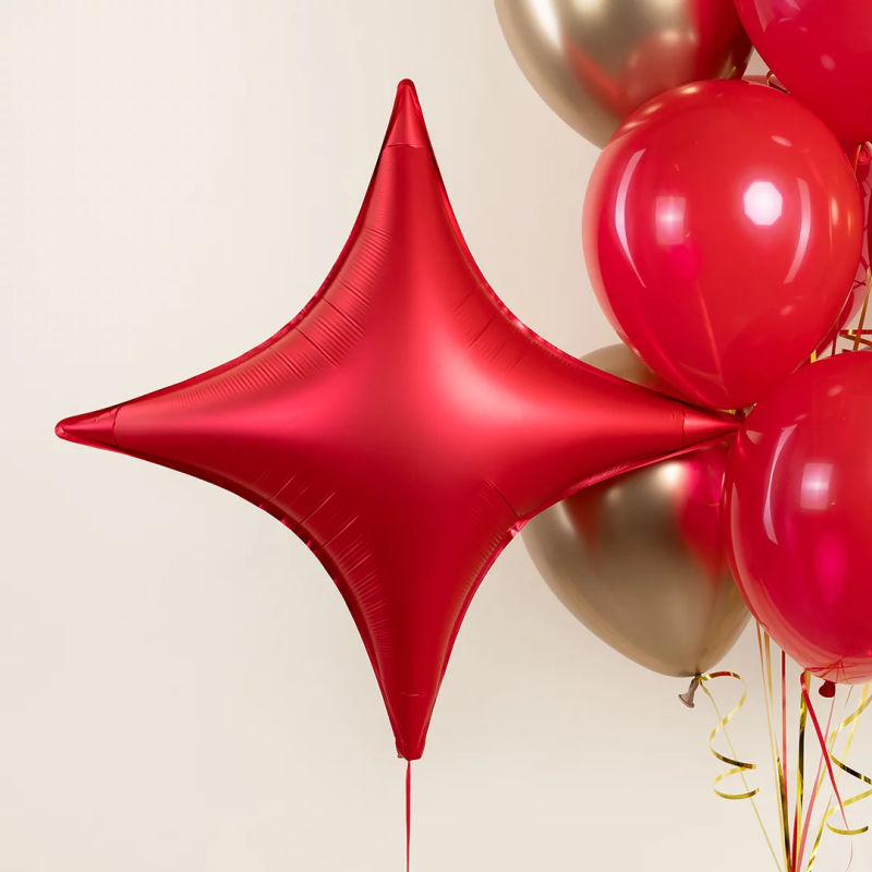 Шар (31''/79 см) Звезда, 4х-конечная, Сириус, Красный, Сатин, 1 шт., 27676