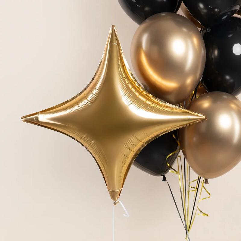Шар (31''/79 см) Звезда, 4х-конечная, Сириус, Золото, Металлик, 1 шт., 27675