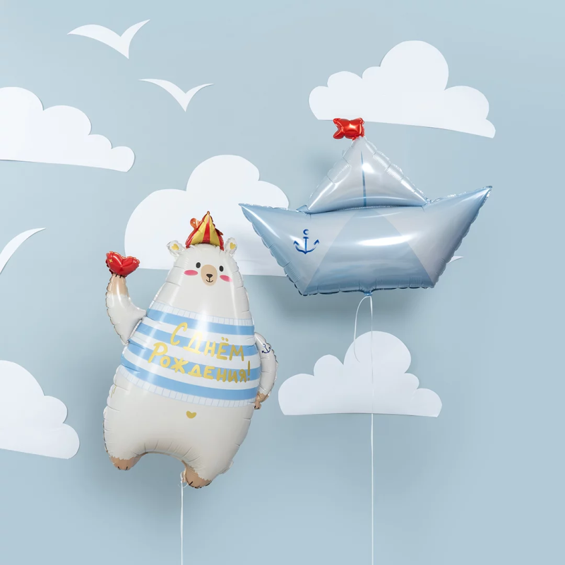 Шар (32''/81 см) Фигура, Бумажный кораблик, 1 шт. в уп., 26478