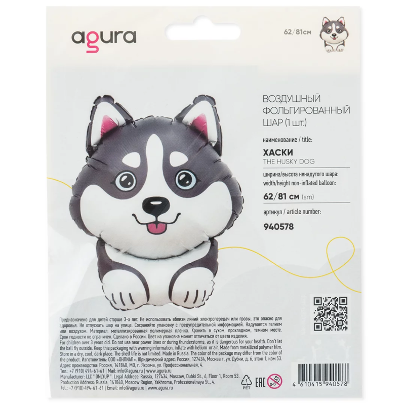 Шар (32''/81 см) Фигура, Хаски, 1 шт. в уп., 940578