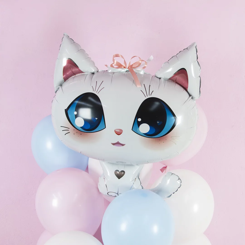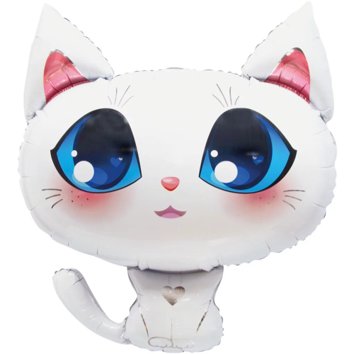 Шар (32''/81 см) Фигура, Котенок, Белый, 1 шт. в уп., 20125