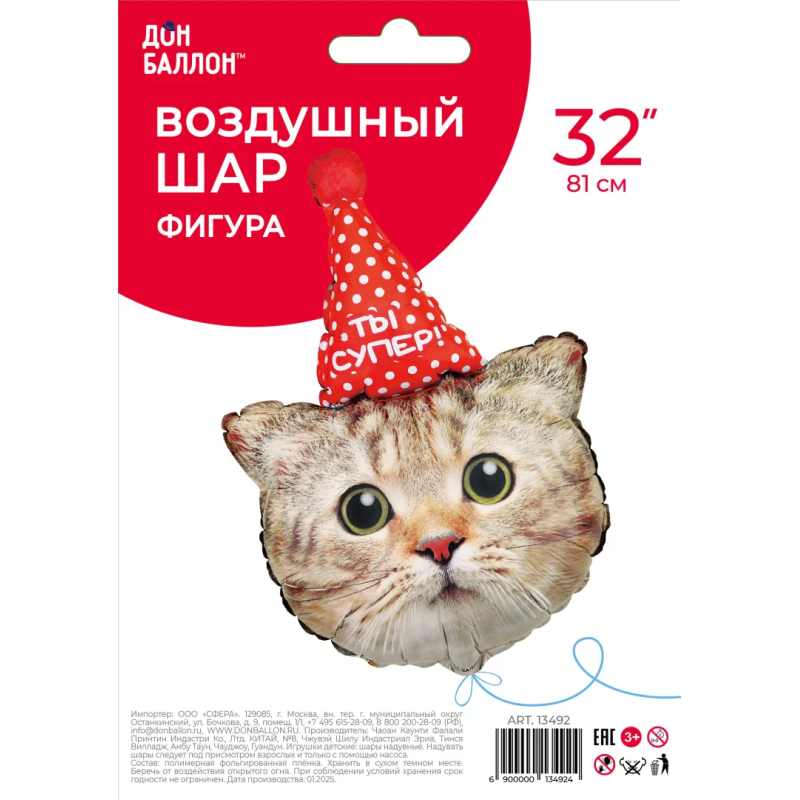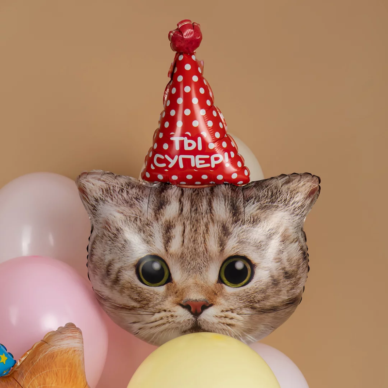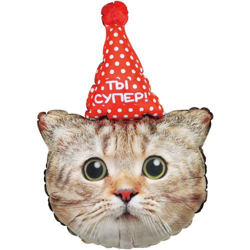 Шар (32''/81 см) Фигура, Котик в колпачке, 1 шт. в уп., 13492