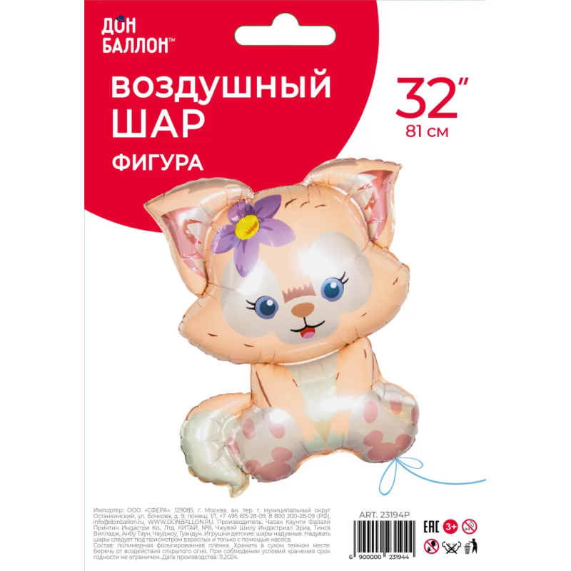 Шар (32''/81 см) Фигура, Лисенок, 1 шт. в уп., 23194P