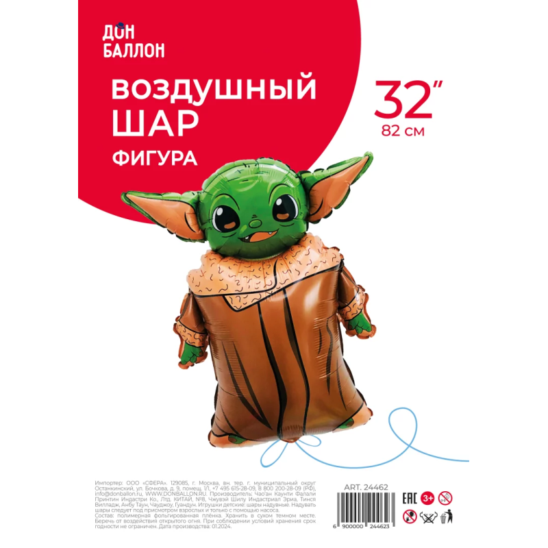 Шар (32''/81 см) Фигура, Малыш Инопланетянин, 1 шт. в уп., 24462