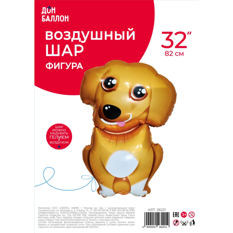 Шар (32''/81 см) Фигура, Милый щенок, 1 шт. в уп., 26221