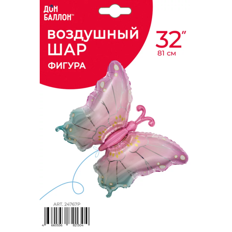 Шар (32''/81 см) Фигура, Нежная бабочка, Розовый, Градиент, 1 шт. в уп., 24767P