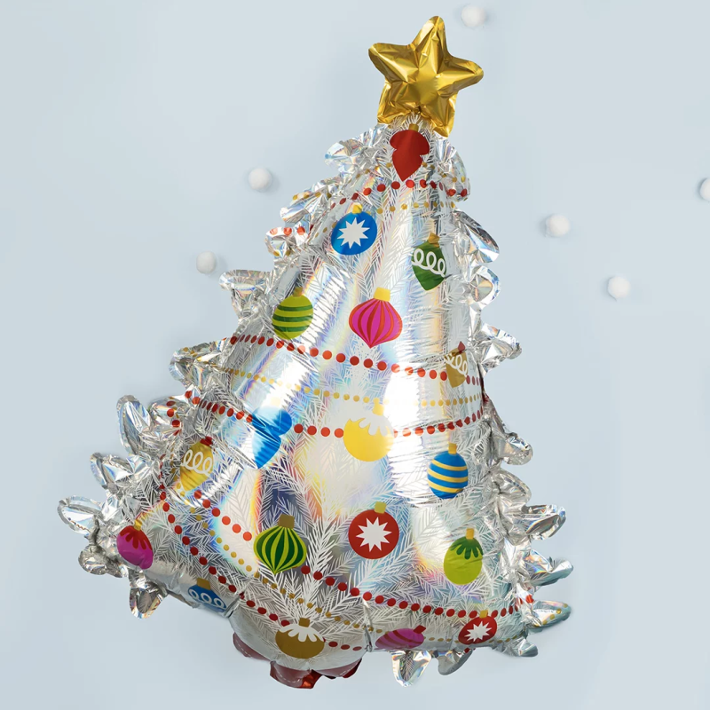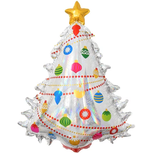 Шар (32''/81 см) Фигура, Новогодняя елка, Серебро, Голография, 1 шт., 19587
