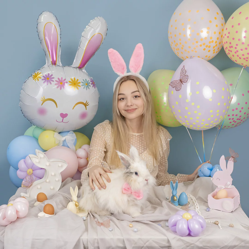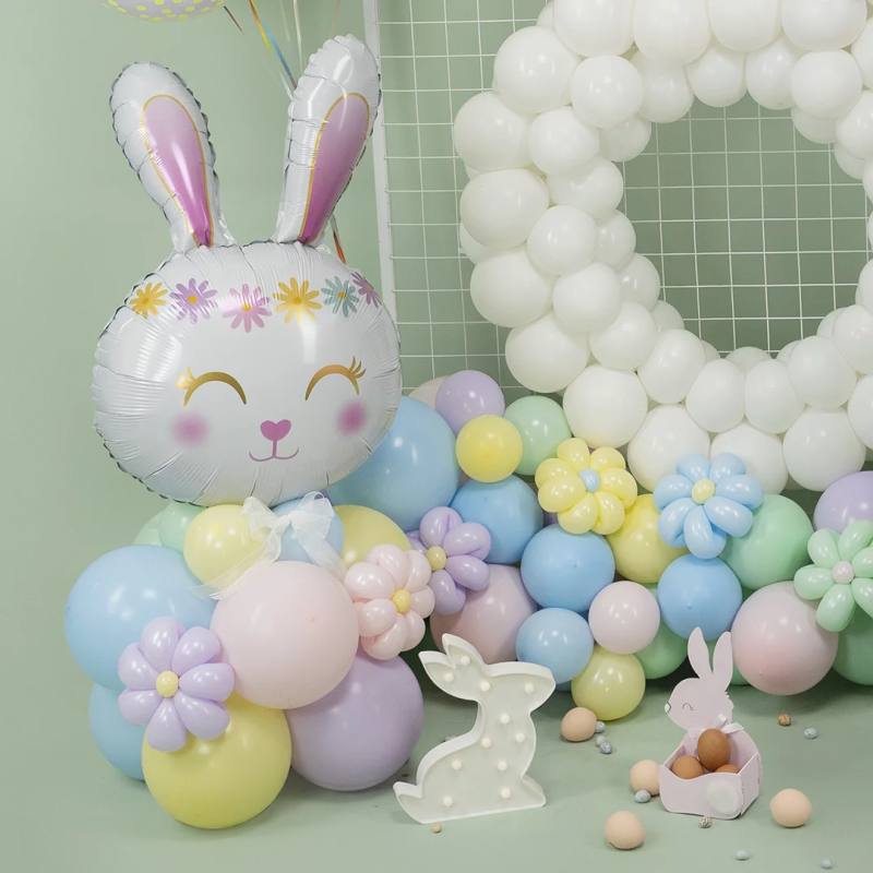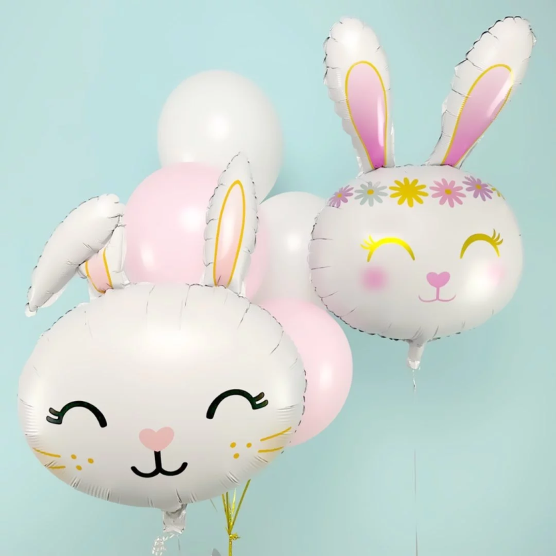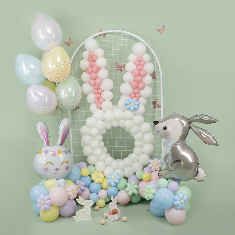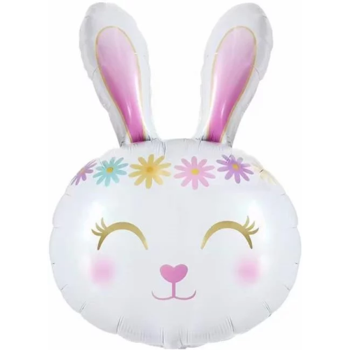 Шар (32''/81 см) Фигура, Цветочный Зайка, Белый, 1 шт., 23360