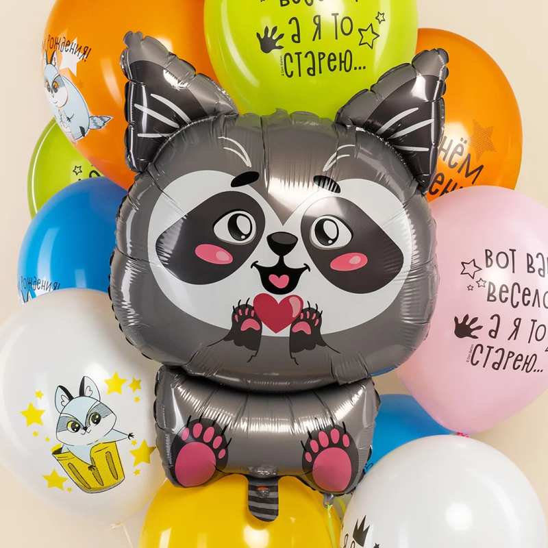 Шар (32''/81 см) Фигура, Енотик с сердечком, 1 шт. в уп., 23521