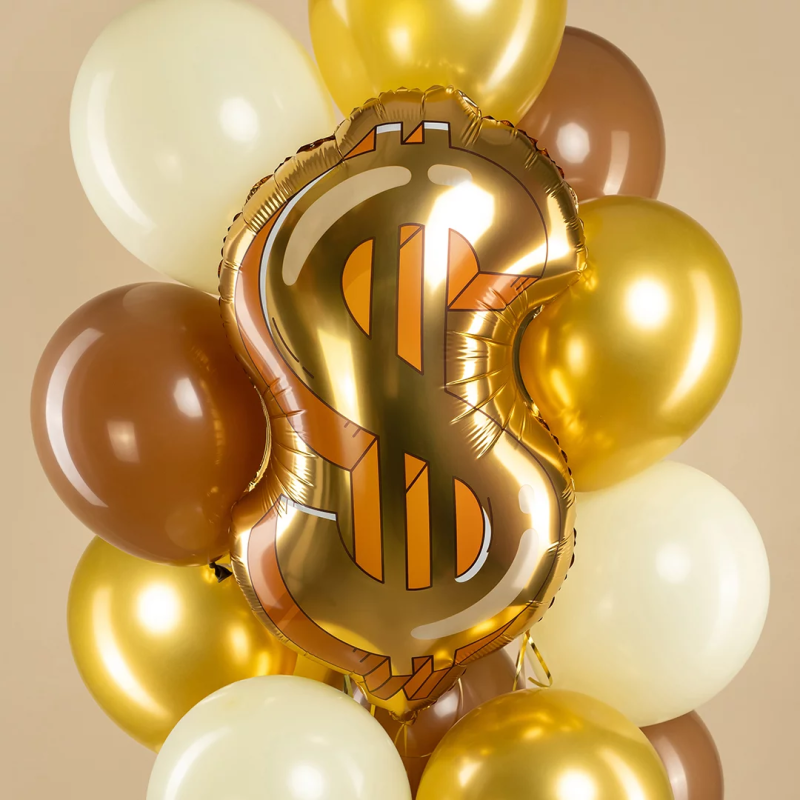Шар (32''/81 см) Фигура, Знак Доллара, Золото, 1 шт. в уп., 26738