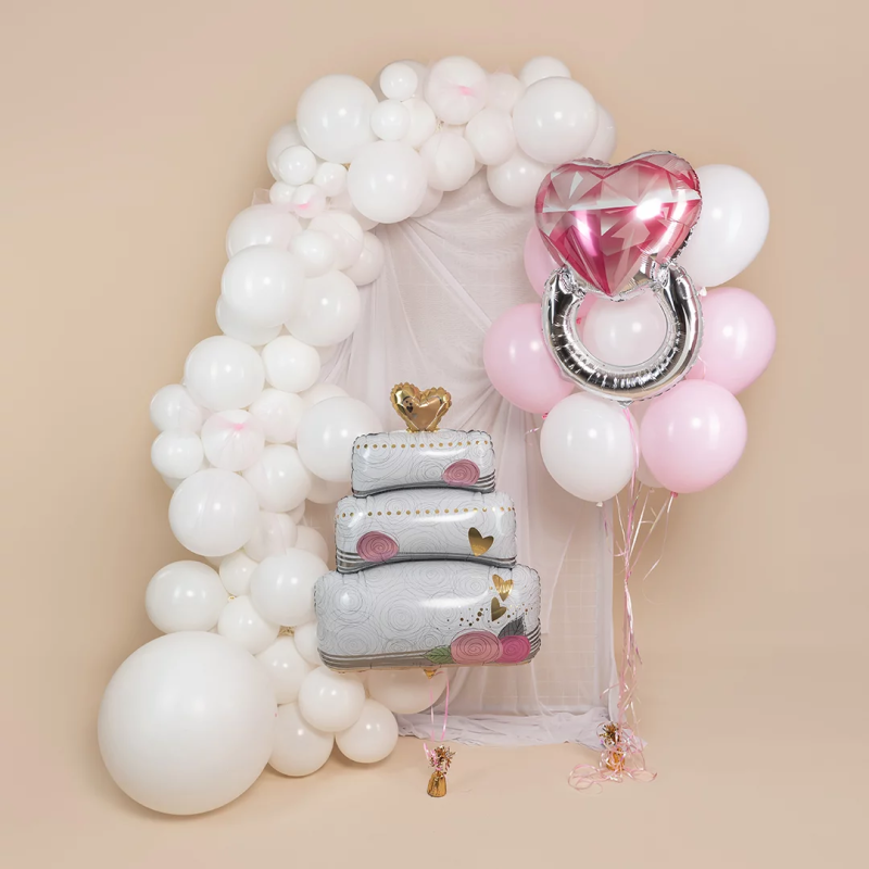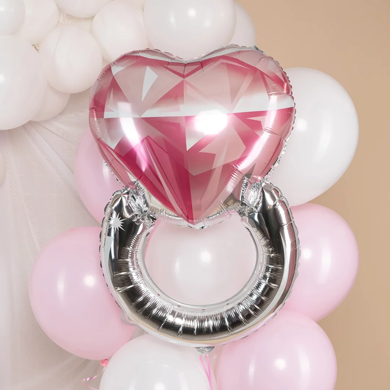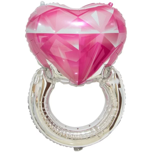 Шар (32''/81 см) Сердце, Кольцо с бриллиантом, Розовый, 1 шт., 17537