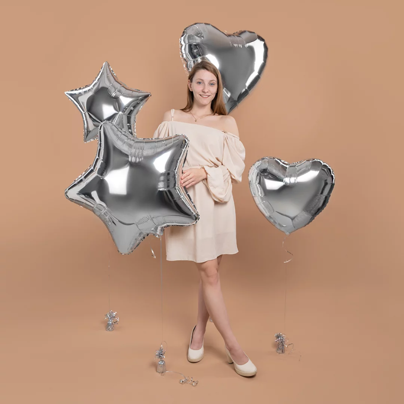 Шар (32''/81 см) Сердце, Серебро, Металлик, 1 шт., 27250