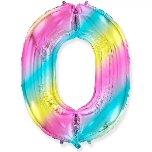 Шар (32''/81 см) Цифра, 0, Диагональная радуга, Градиент, 1 шт. в уп., B901810G