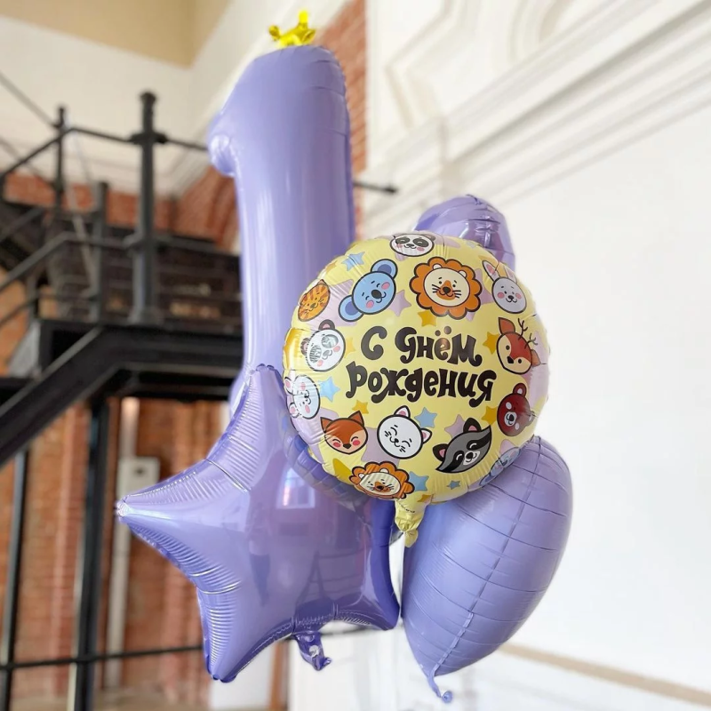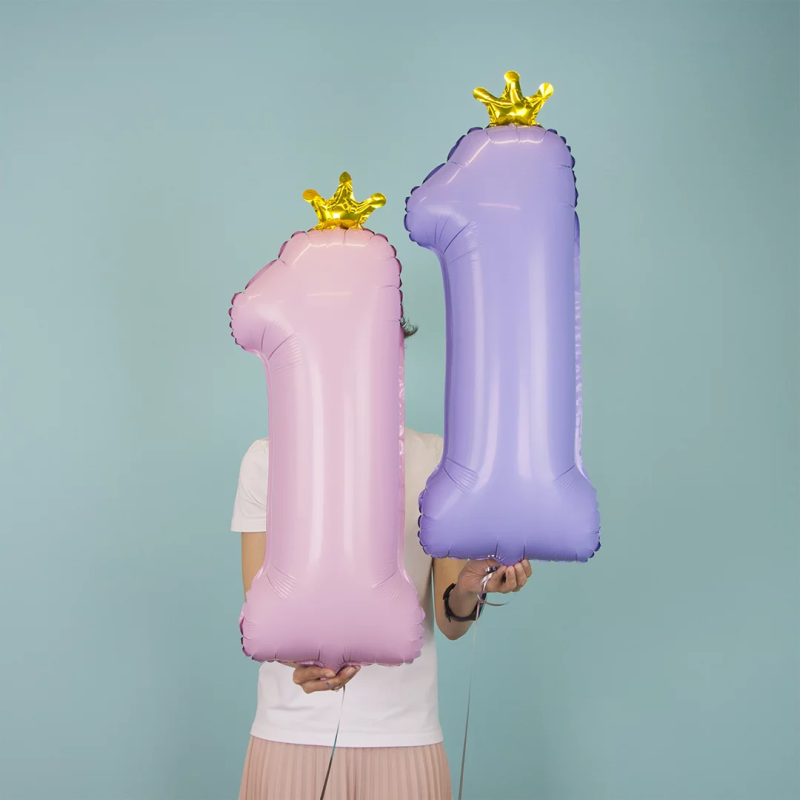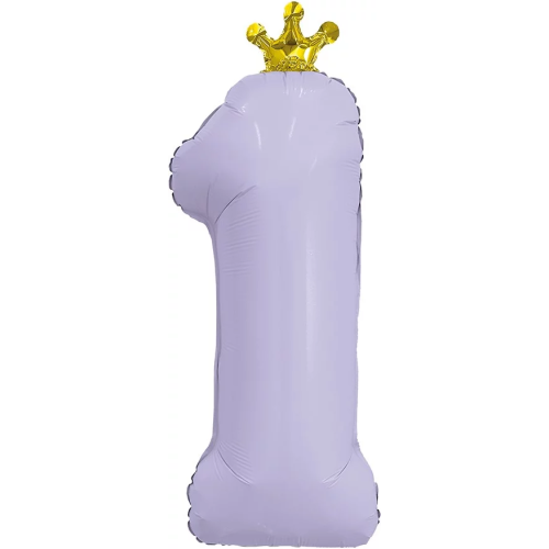 Шар (32''/81 см) Цифра, 1 Золотая корона, Лаванда, 1 шт. в уп., 221042