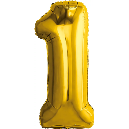 Шар (32''/81 см) Цифра, 1, Золото, 1 шт. в уп., 759172