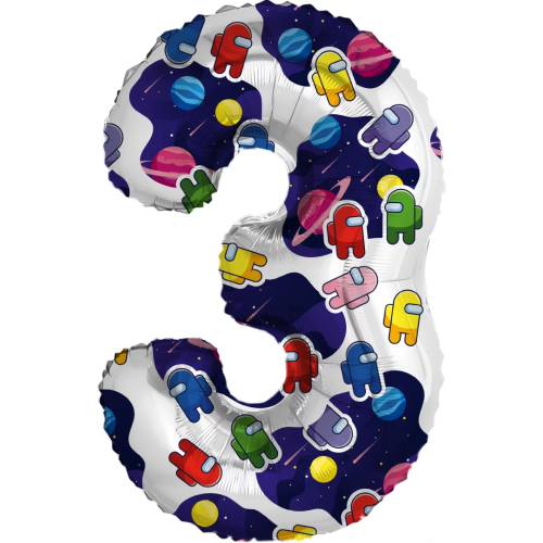 Шар (32''/81 см) Цифра, 3 Космонавтики, 1 шт. в уп., 220229