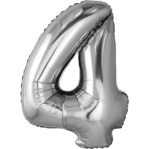 Шар (32''/81 см) Цифра, 4, Серебро, 1 шт. в уп., 759301