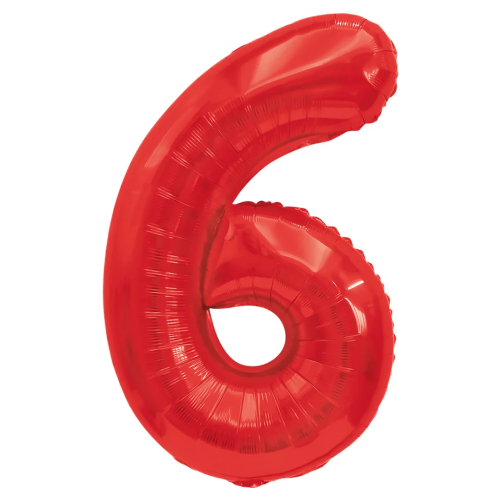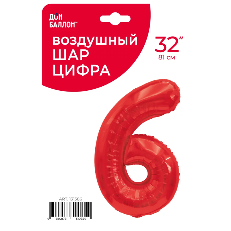 Шар (32''/81 см) Цифра, 6, Красный, 1 шт. в уп., 131386