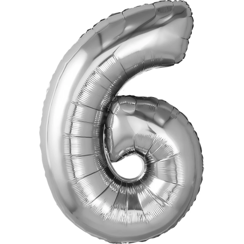 Шар (32''/81 см) Цифра, 6, Серебро, 1 шт. в уп., 759325