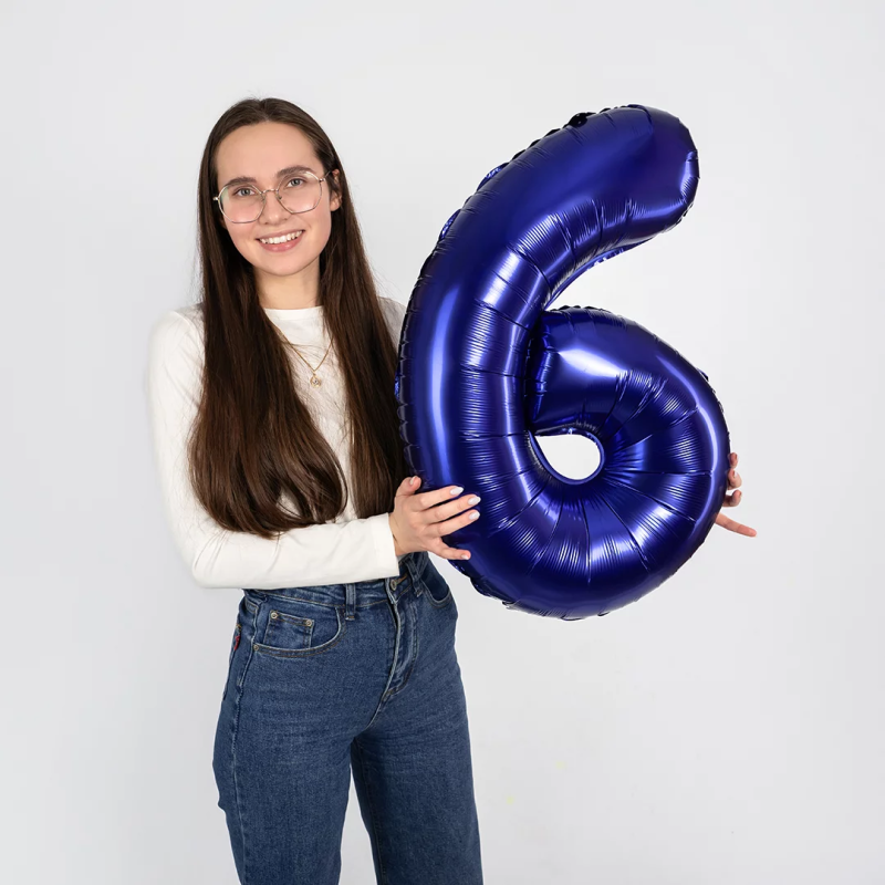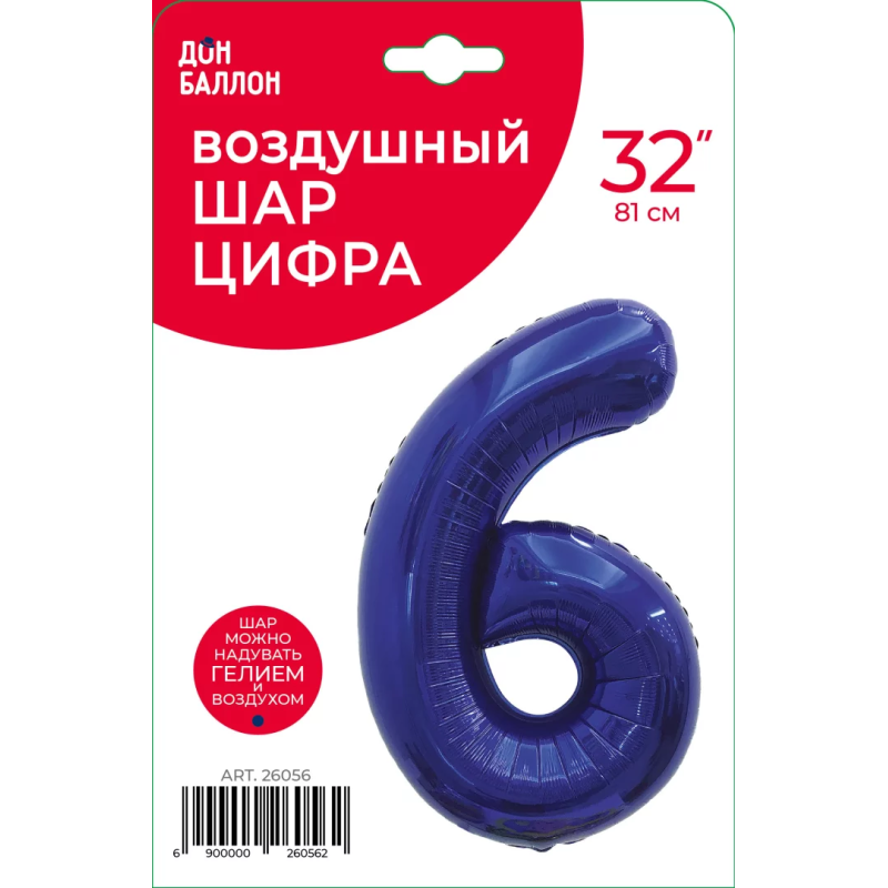 Шар (32''/81 см) Цифра, 6, Темно-синий, 1 шт. в уп., 26056