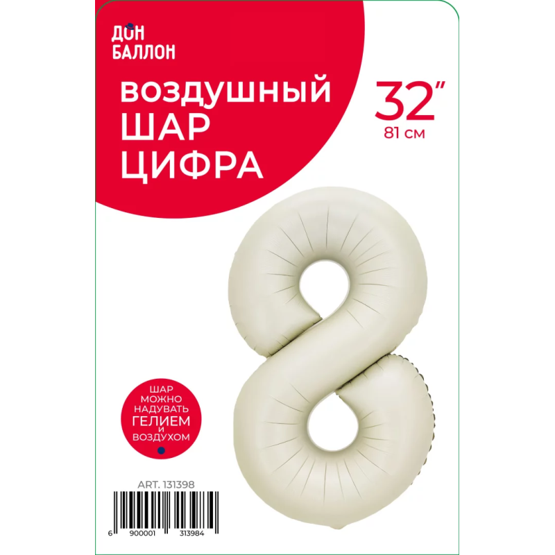 Шар (32''/81 см) Цифра, 8, Белый песок, Сатин, 1 шт. в уп., 131398