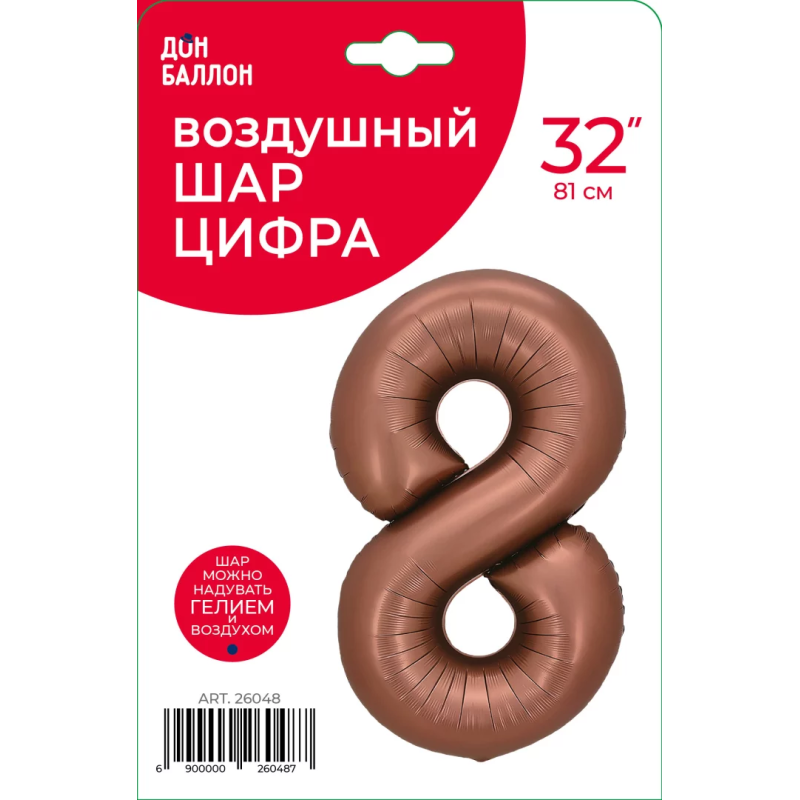 Шар (32''/81 см) Цифра, 8, Шоколадный, 1 шт. в уп., 26048